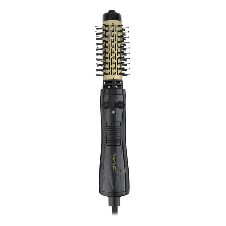 سشوار برسدار چرخشی مک استایلر مدل MC-6625، دارای دو برس گرد است که در هنگام برسکردن میتوانیم از آن بهعنوان سشوار هم استفاده کنیم. این سشوار با طراحی منحصر به فرد و کارامد، به خوبی موها را صاف میکند. سر چرخشی این سشوار از جنس سرامیک می باشد. جنس بدنه دستگاه از پلاستیک بادوام و انعطاف پذیر می باشد که کارکردن با آن را برای مصرف کننده راحت می کند. موتور چرخشی این سشوار با دکمههای تعبیه شده بر روی دستگاه کنترل میشود که شامل دکمه اصلی جهت خاموش و روشن کردن و دو حالت تنظیم ترکیبی دما و سرعت باد و یک حالت باد سرد می باشد. سیم برق سشوار مک استایلر ۱,۵ متر است و در محل اتصال حالت چرخشی ۳۶۰ درجه دارد که این مورد یکی از مزیتهایی است که باعث شده خرید سشوار با چنین مشخصاتی مورد استقبال قرار گیرد. مدل MC-۶۶۲۵ یک سشوار چند کاره بوده که به راحتی میتواند موها را خشک، صاف، حالت دار و فر نماید. همچنین موتور تولید یون با روشن شدن سشوار راه اندازی شده و الکتریسیته ساکن موها را خنثی میکند. از این دستگاه میتوان در منازل و حتی در آرایشگاهها هم استفاده کرد.